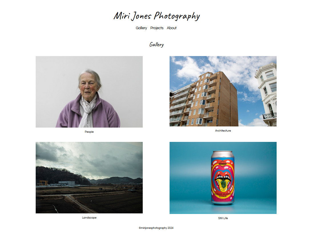 Miri Jones Photography is my photography brand and portfolio. It is a WIP as eventually I would like to add a print store to it when I redevelop it into WordPress.